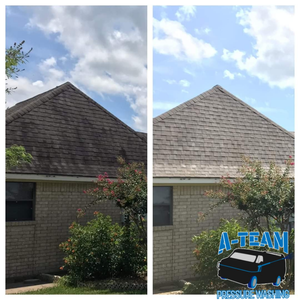 A-Team Pressure Washing uses specialized techniques and eco-friendly solutions designed to safely and effectively remove dirt, moss, algae, and other contaminants from your roof's surface. Professional roof cleaning is the perfect way to restore your roof's original beauty and prolong its lifespan. Our team has years of experience and keen attention to detail, ensuring thorough and meticulous cleaning without causing any damage to your roof's integrity.